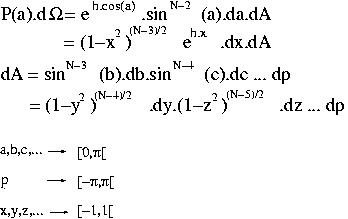 Spins with N components: S=(Sx,Sy,Sz,Su,...) local field : hlocal=(hlocalx,hlocaly,hlocalz,hlocalu,...) Energy=-S.hlocal=-hlocal.cos(a) P(x)=e-Energy/T.sinN-2(a).da ... dp =eh.cos(a).sinN-2(a).da ... dp  |